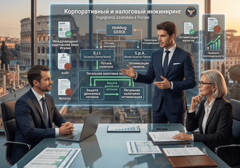 Создание безупречной финансовой архитектуры. От регистрации элитных форм собственности (SRL, SPA) до легальной оптимизации налогообложения и защиты денежных потоков с привлечением ведущих аудиторских бюро Италии.