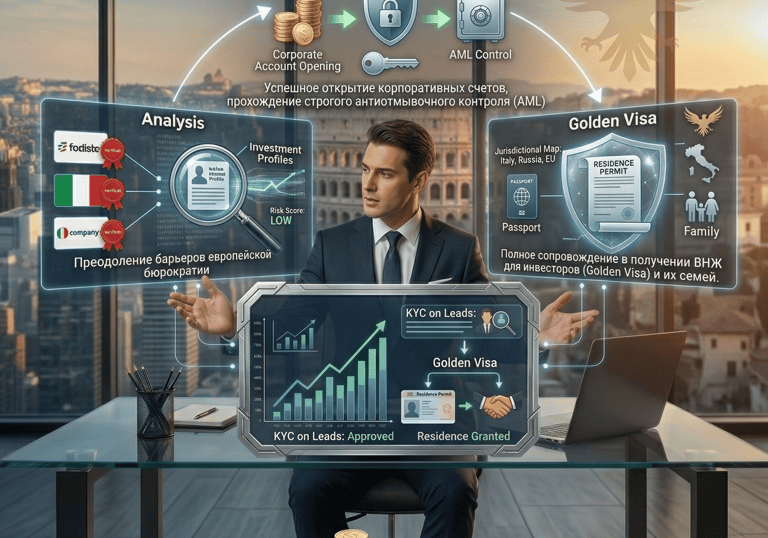 Преодоление барьеров европейской бюрократии. Успешное открытие корпоративных счетов, прохождение строгого антиотмывочного контроля (AML) и полное сопровождение в получении ВНЖ для инвесторов (Golden Visa) и их семей.
