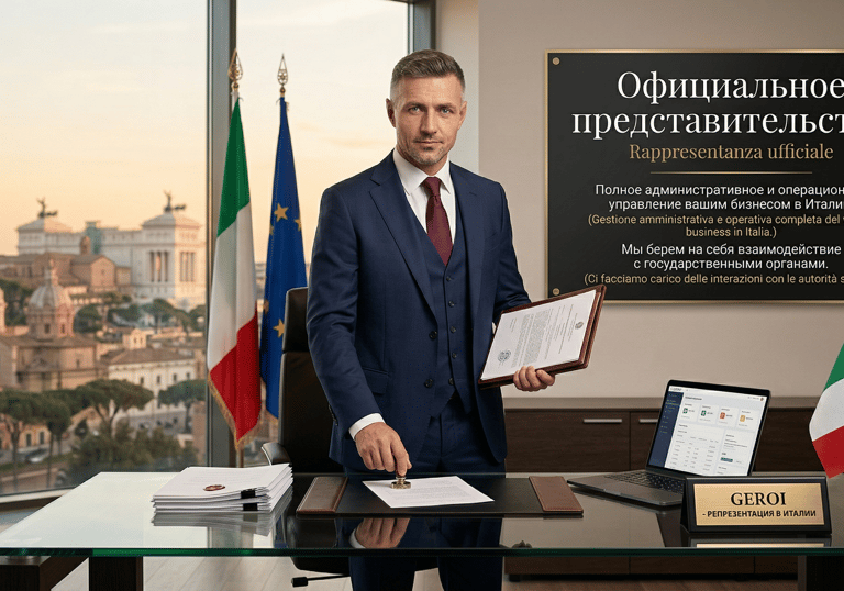 Полное административное и операционное управление вашим бизнесом в Италии. Мы берем на себя взаимодействие с государственными органами, выступая вашим надежным доверенным лицом и гарантом стабильности на территории ЕС.