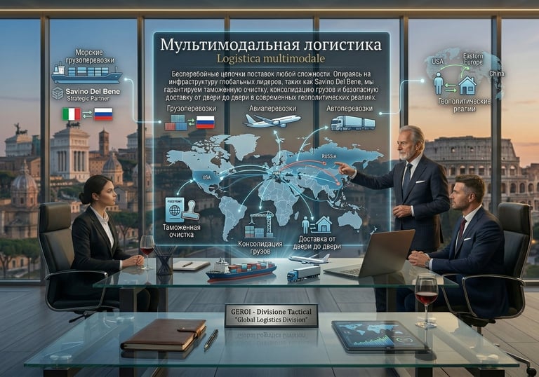 Наша модель — это концепция "Boutique Firm". Мы опираемся на мощную сеть проверенных партнеров: от ведущих аудиторских бюро и юридических фирм Италии до глобальных лидеров в сфере международных грузоперевозок. Это позволяет нам обеспечивать платиновую надежность каждой сделки.